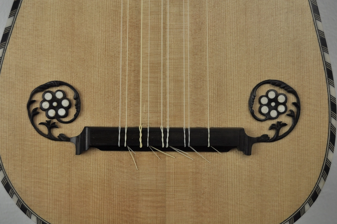 Finition : vernis gomme‐laque sur les éclisses, le fond de la caisse, l’arrière du manche et le cheviller. Table d’harmonie et touche cirées à la cire microcristalline.